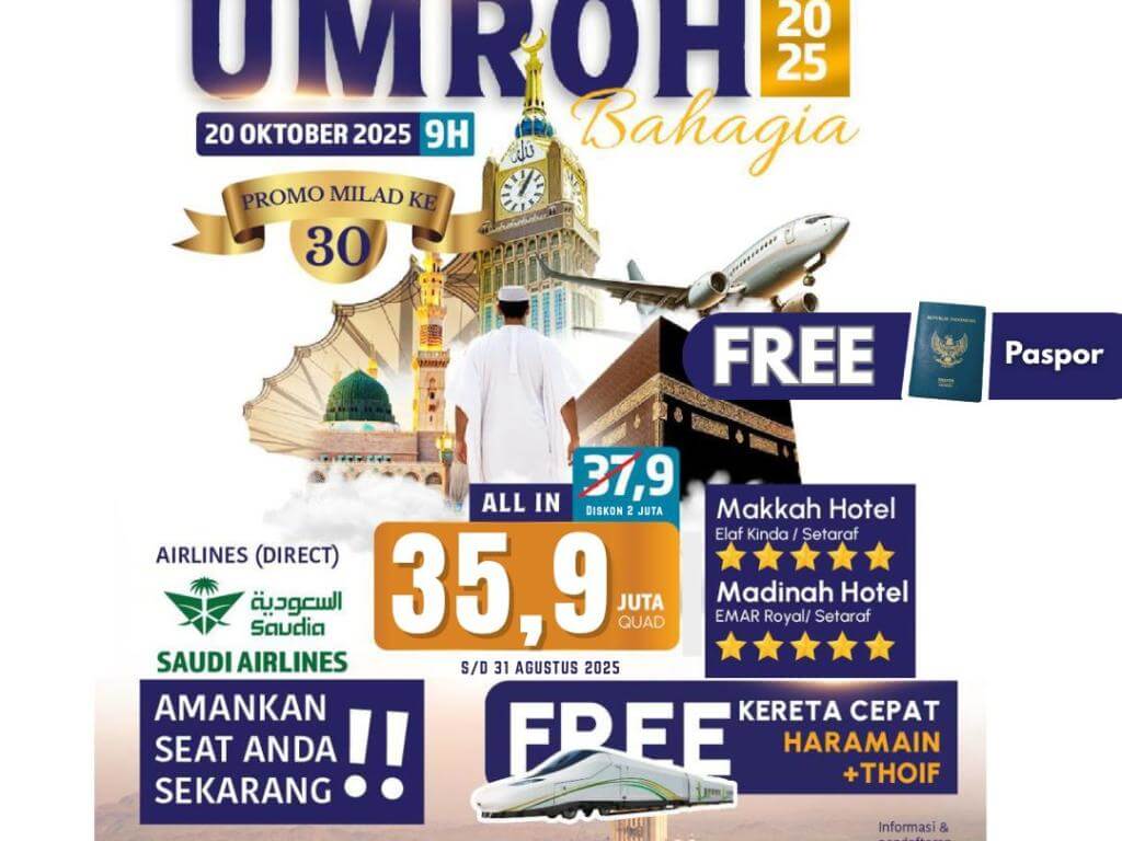 UMROH BAHAGIA SPECIAL MILAD 09D HOTEL BINTANG 5 (PLUS THAIF & KERETA CEPAT HARAMAIN)