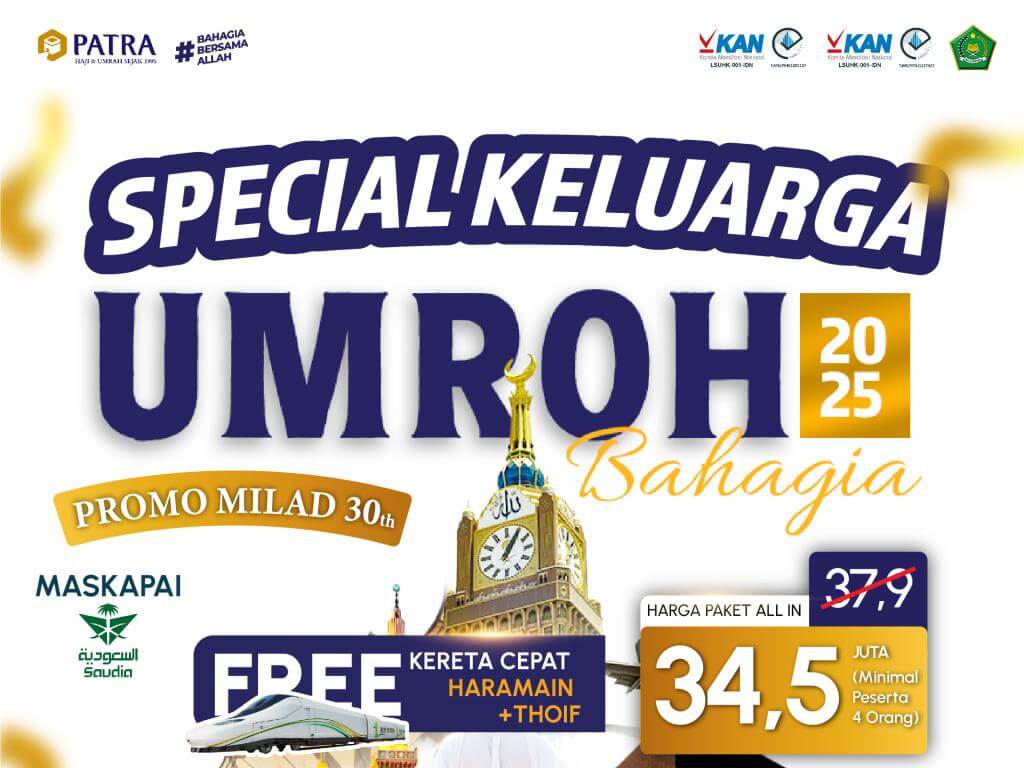 UMROH PAKET BAHAGIA-SPECIAL KELUARGA-PROMO MILAD*5-PLUS KERETA CEPAT & THAIF